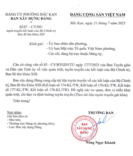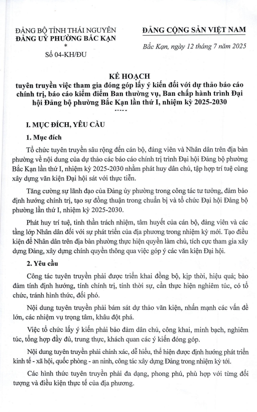 Ngày 20/7/2025, Ban Tuyên giáo và Dân vận Tỉnh ủy đã ban hành Hướng dẫn số 02-HD/BTGDVTU về việc lấy ý kiến Nhân dân góp ý vào dự thảo Báo cáo chính trị trình Đại hội