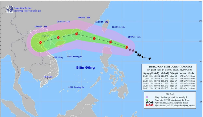Theo Trung tâm Dự báo Khí tượng Thủy văn Quốc gia, sáng 22-7, bão số 3 tiếp tục di chuyển theo hướng Tây Tây Nam, tiến sát đất liền Bắc Bộ với cường độ gió mạnh cấp