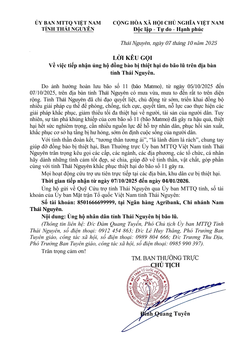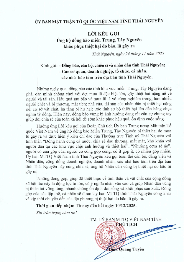 Thiết thực kỷ niệm 80 năm Cách mạng Tháng Tám và Quốc khánh 02/9 (1945 – 2025), dưới sự chỉ đạo nội dung của Tỉnh ủy, HĐND, UBND, Ủy ban MTTQ Việt Nam tỉnh Thái Nguyên;